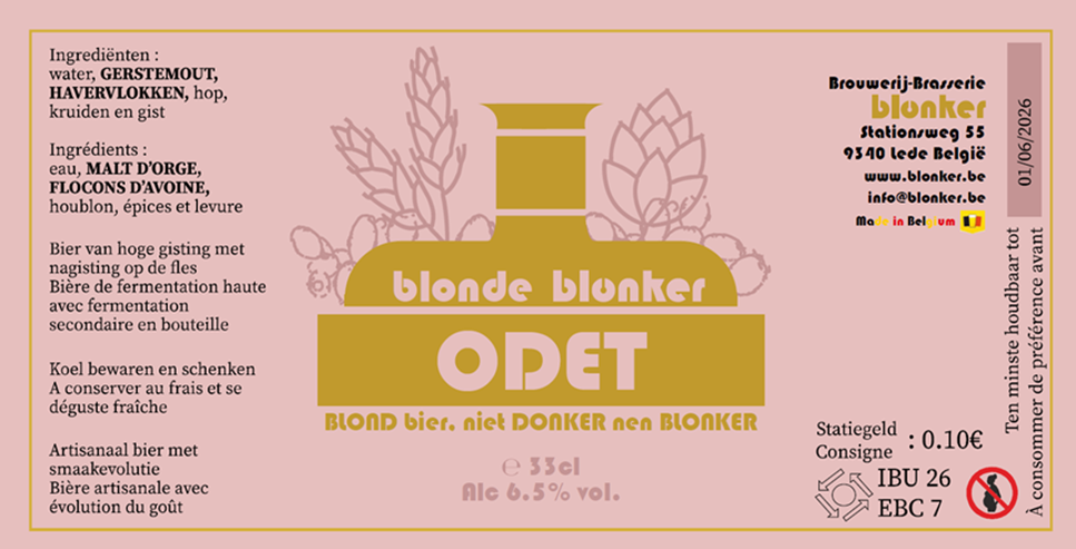 Blond bier. Niet donker. Maar BLONKER.BLONKER ODET is een ongefilterd blond bier met een frisse, dorstlessende persoonlijkheid.Met zijn 6,5% alcohol is het vlot drinkbaar — niet te straf, maar zeker niet saai.
